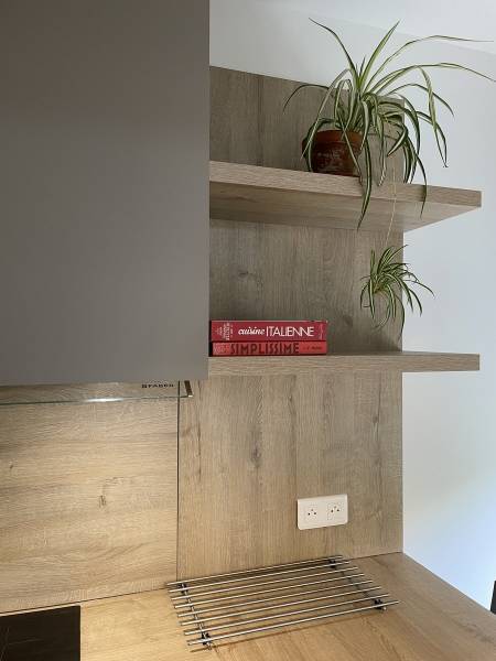 Les étagères amènent un coté déco permettant d'intégrer des petites touches végétales à l'ambiance.