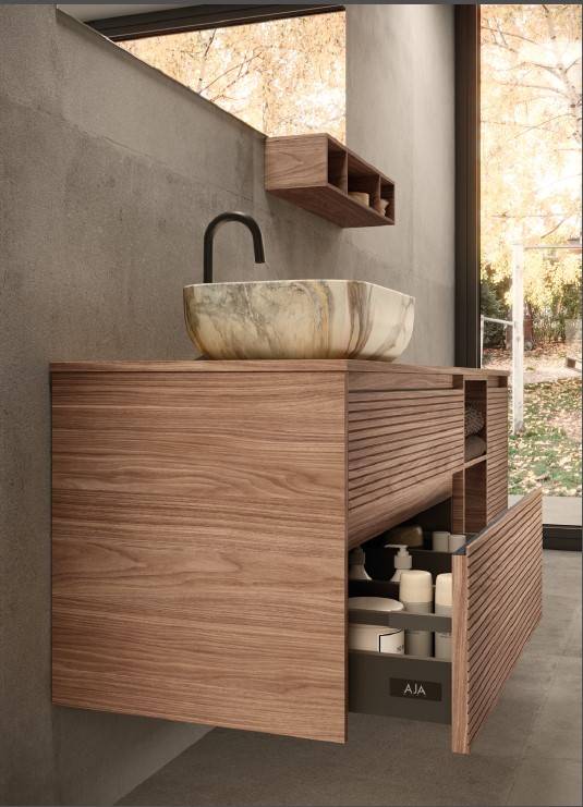 Tendance salle de bains 2024 : le bois strié