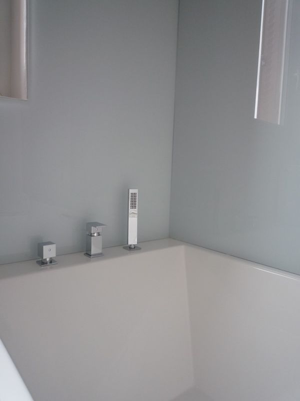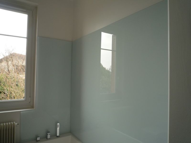 Les parois ont été revêtu de verre laqué assurant l’étanchéité et la protection autour de la baignoire.
