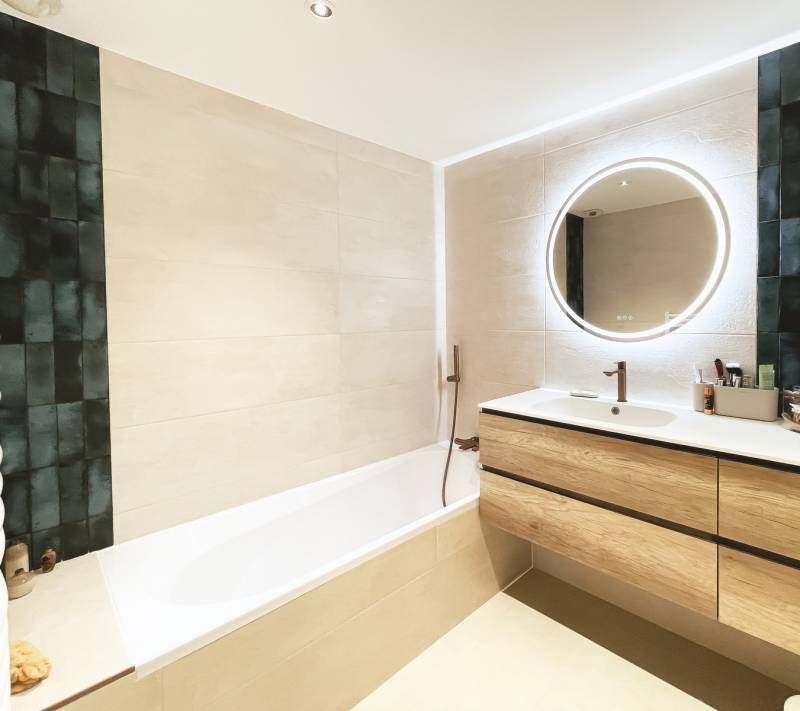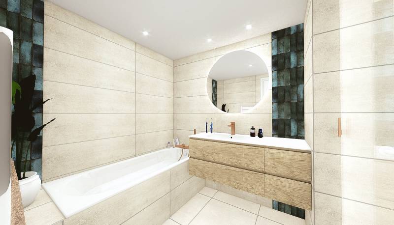 Lors de nos projets clé en mains pour la rénovation de salle de bains, nous nous occupons du projet de A à Z. L'étude du projet de rénovation de salle de bains (aménagement, décoration, éléments technique à prendre en compte), la conception des visuels 3D ainsi que la réalisation avec le suivi de chantier et son organisation.